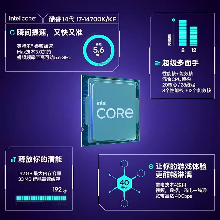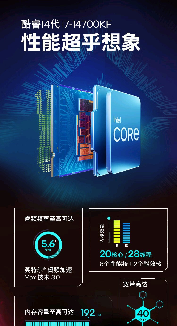 新品酷睿14代 i7-14700KF盒装 20核28线程CPU台式机电脑处理器