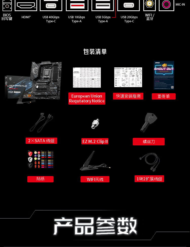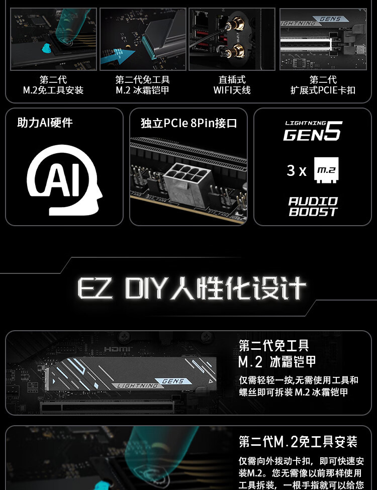 适用微星X870 GAMING PLUS WIFI 电竞主板 支持CPU 9900X3D/9950