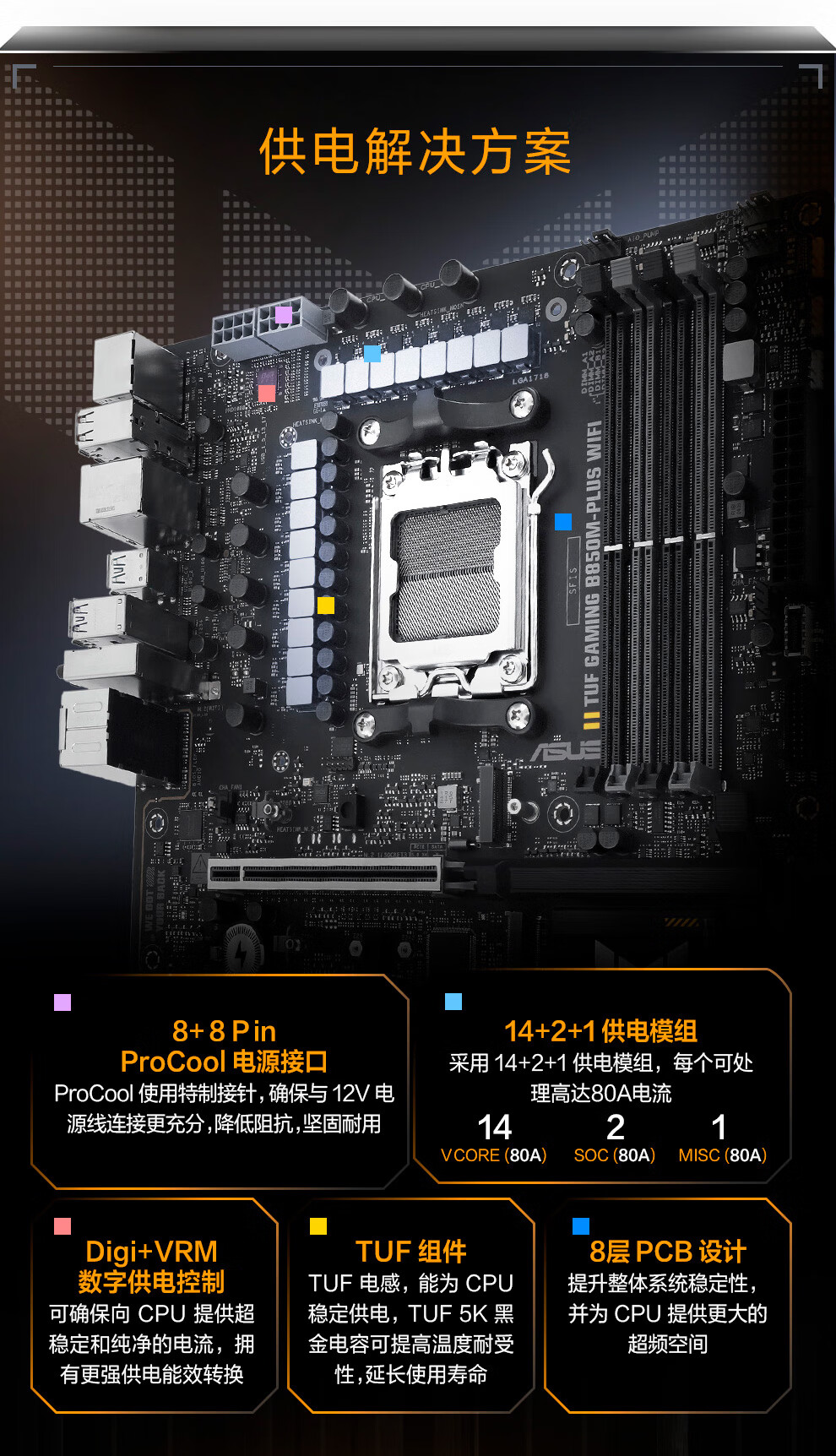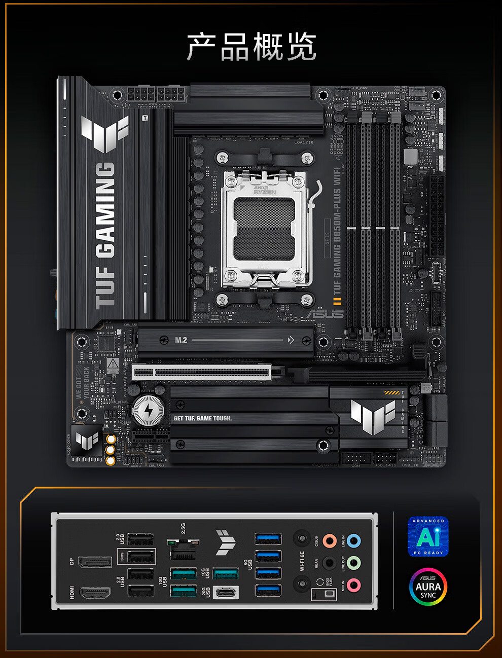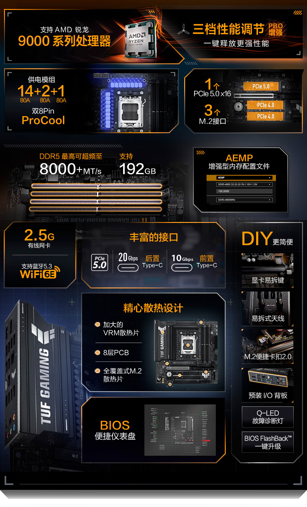 华硕 TUF GAMING B850M PLUS WIFI重炮手主板适用9700X/9800X3D