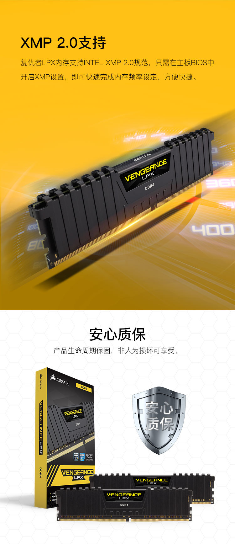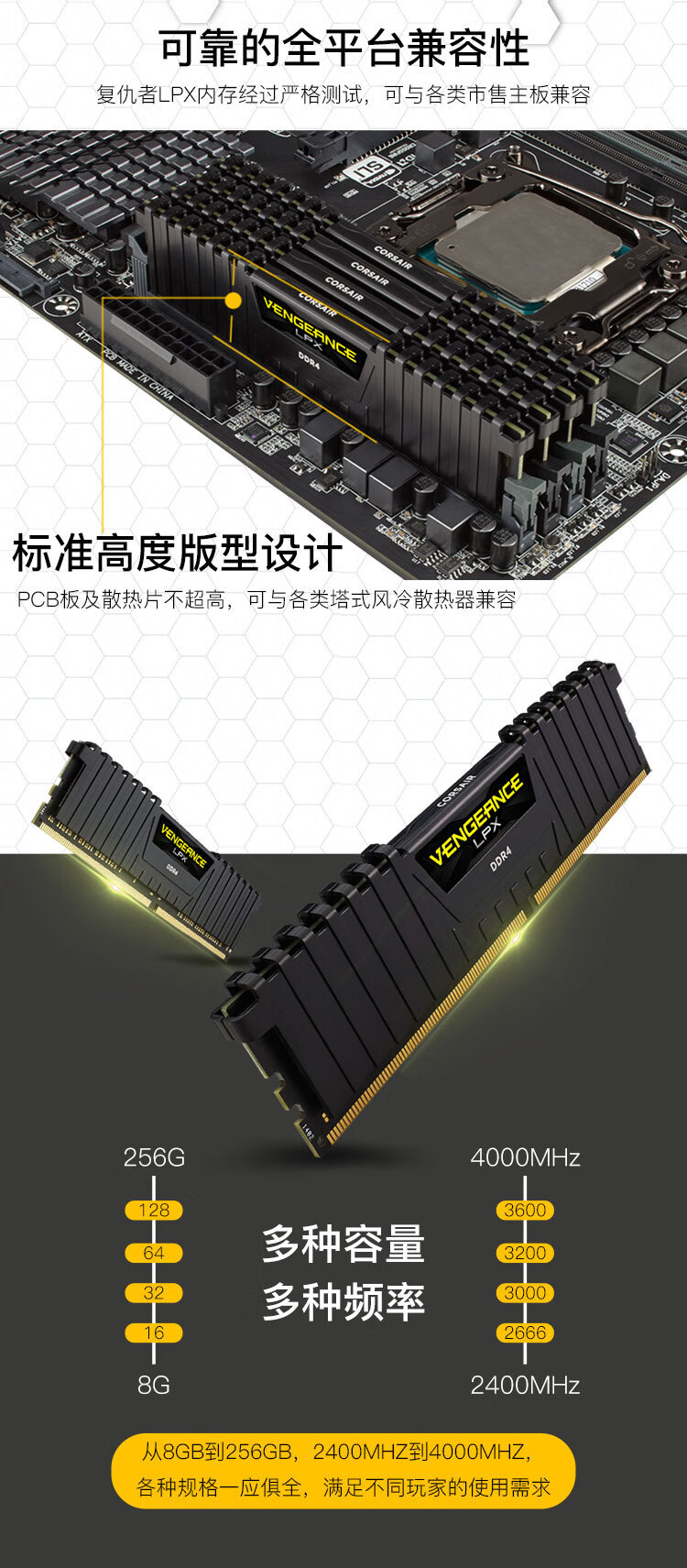 美商海盗船复仇者LPX DDR4 8G/16G 3600/3200台式电脑内存条单条