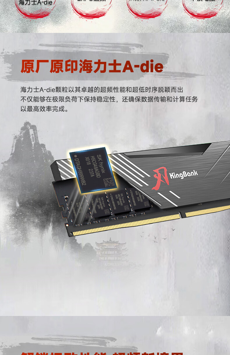 金百达星刃黑甲系列DDR5台式机电脑电竞游戏办公内存条套装海力士