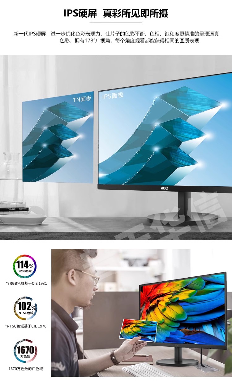 AOC 27寸高清2K 100HZ IPS屏台式机电脑家用办公液晶显示器屏幕