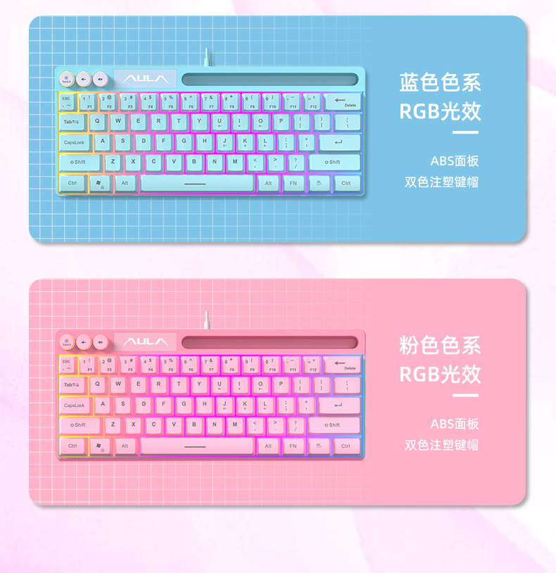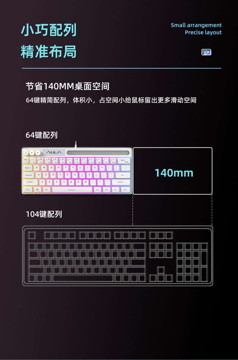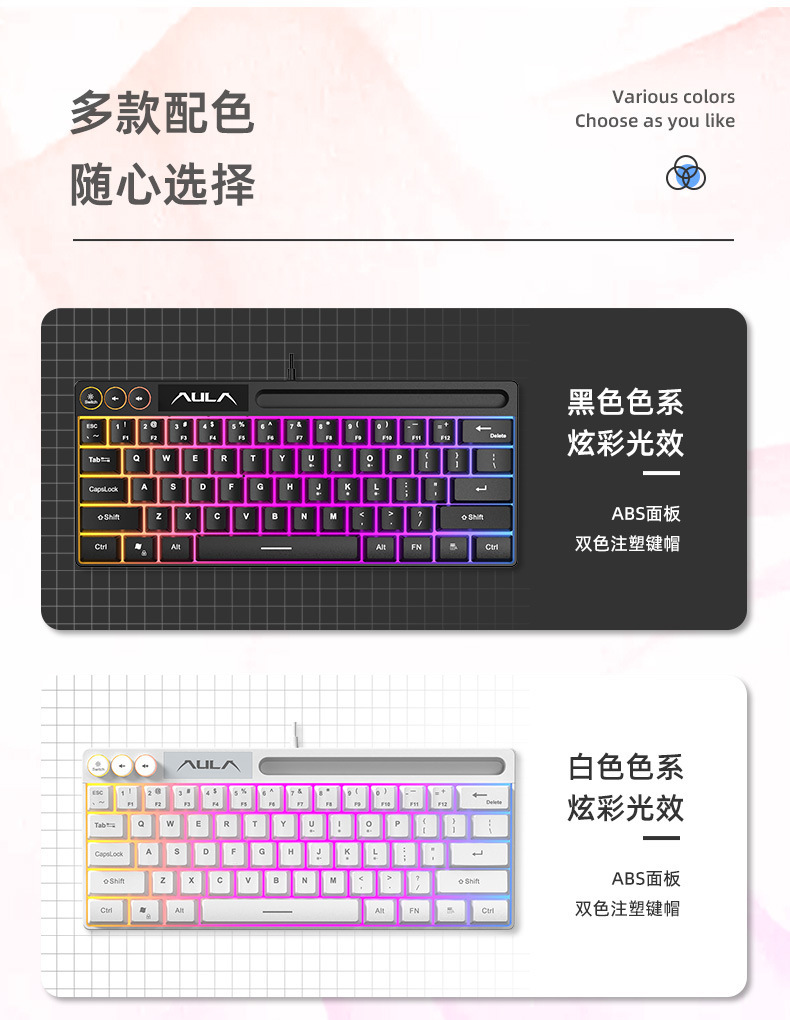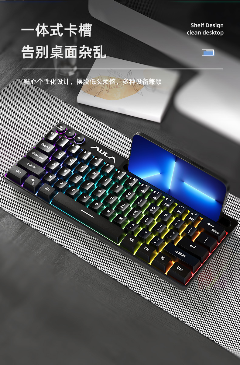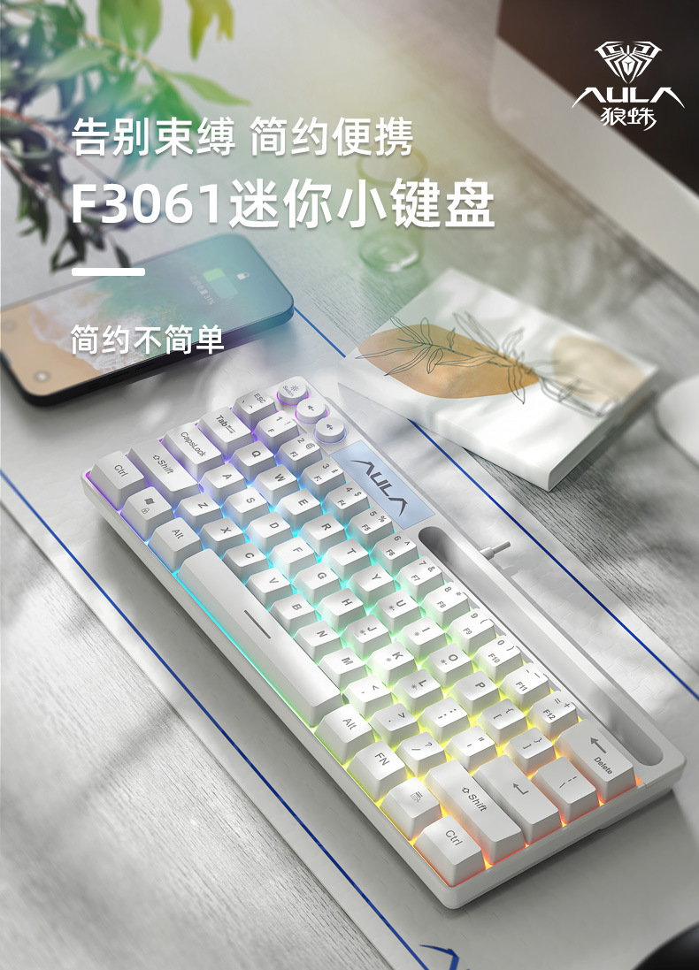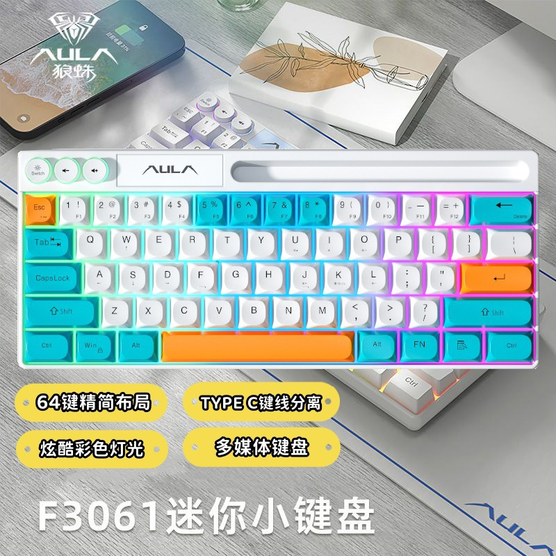 狼蛛F3061机械手感键盘64键有线迷你RGB台式笔记本电脑便捷单键盘