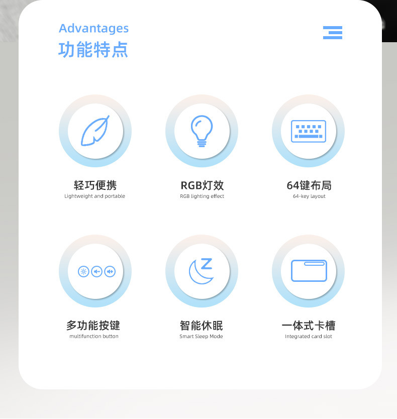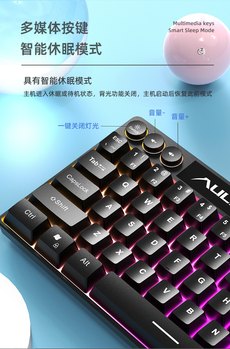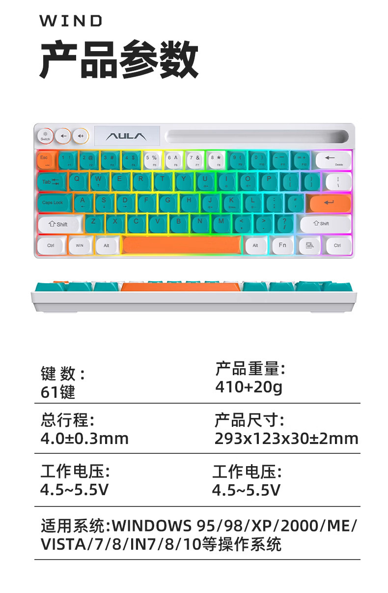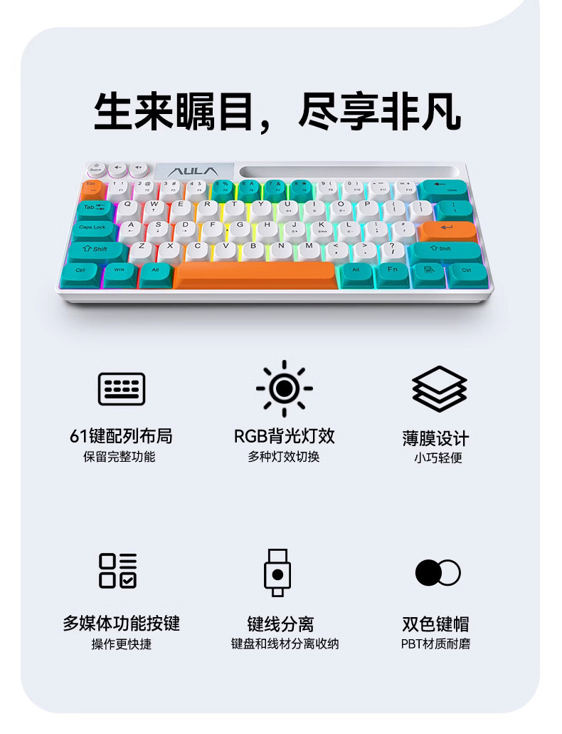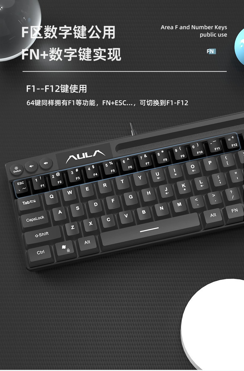 狼蛛F3061机械手感键盘64键有线迷你RGB台式笔记本电脑便捷单键盘